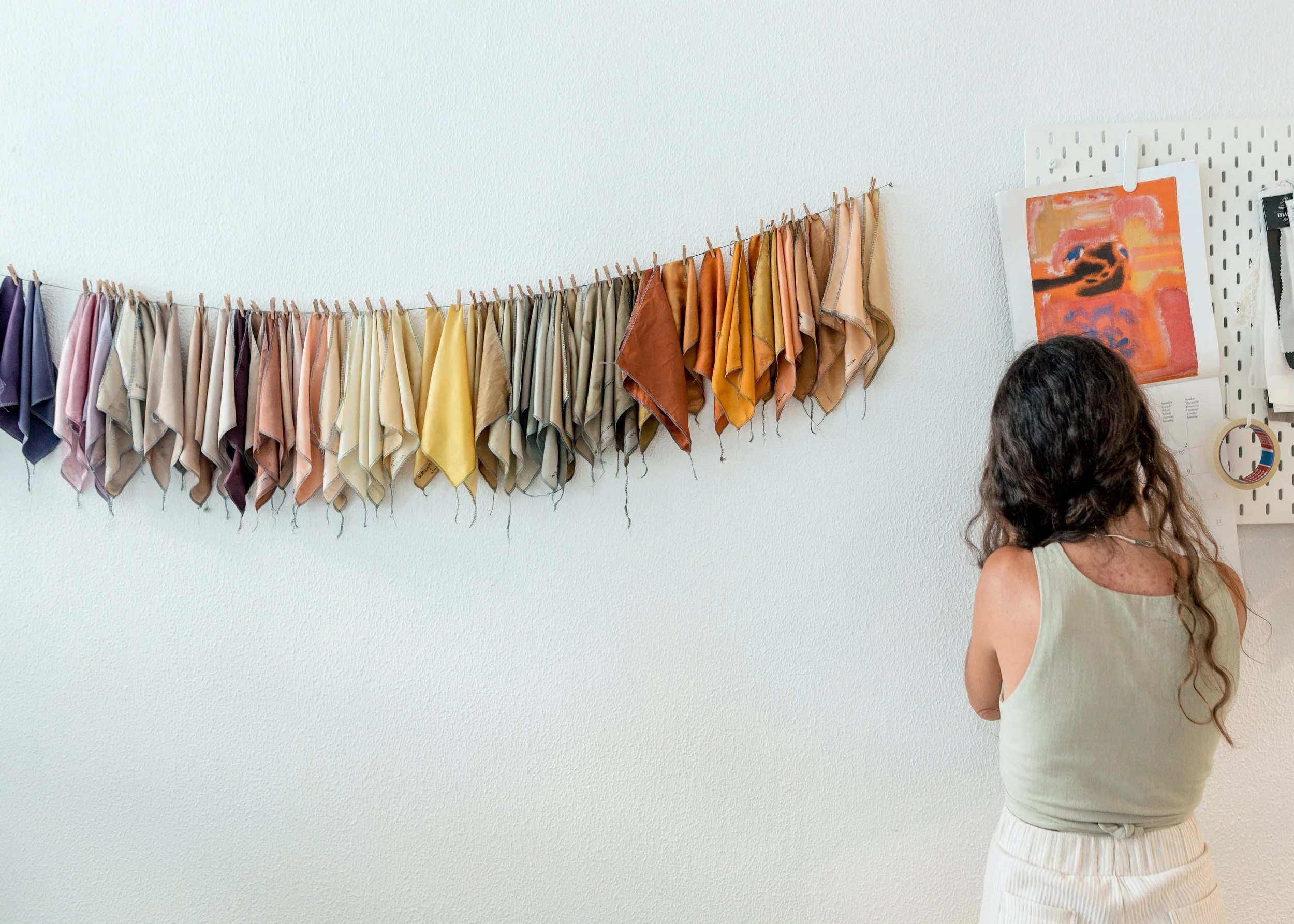 I love foraging, going on long walks and hikes with my dog, and collecting plants to later experiment with in the studio. There’s something very grounding about that process: being outside, observing, gathering, and then transforming those materials into colour and form.