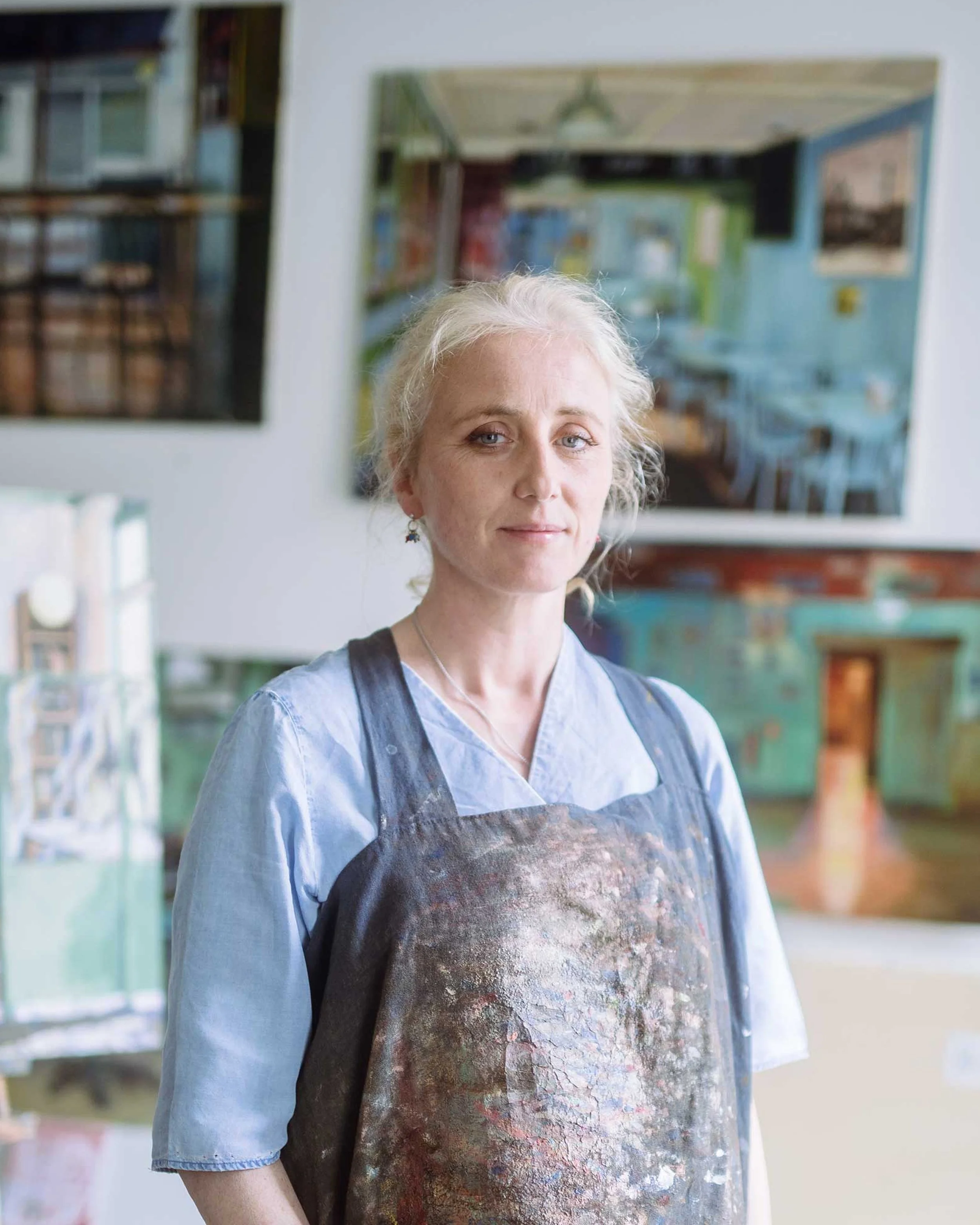Her work has been exhibited in Dublin and London, including solo exhibitions at venues like The Dean Art Studios and Hang Tough Contemporary, showcasing her mastery of oil paints on various surfaces.